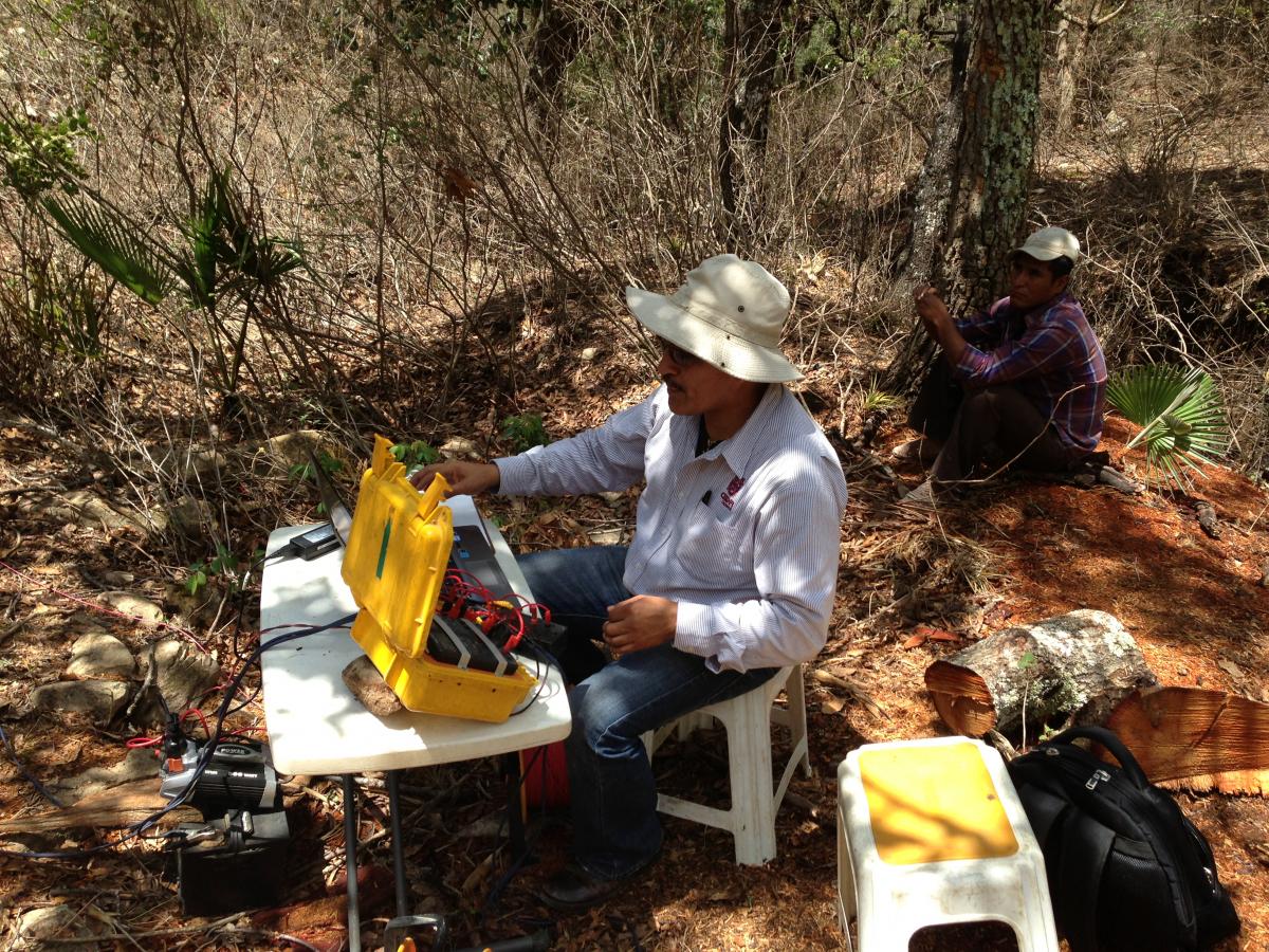 Tomando medidas de resistividad eléctrica en Santa Mitlatongo, Nochixtla, Oax.